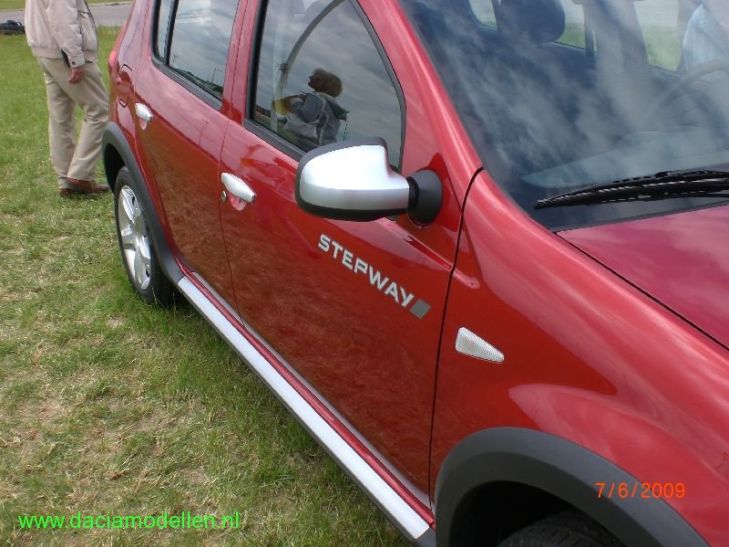 Tijdens deze meeting was er ook nog een primeur: Dacia NL onthulde de Dacia Sandero Stepway! Deze auto is vorige week voorgesteld op de autoshow in Barcelona en is nu hier heen gehaald. De auto staat hier vanaf september in de showroom en zal geprijsd gaan worden vanaf 11.495 euro!! De stepway is gewijzigd t.o.v. de standaard Sandero: de bodemvrijheid is verhoogd en de auto is uiterlijk voorzien van groffere kunststof delen en in zilverkleur gespoten delen om de auto een stoerder uiterlijk te geven.
