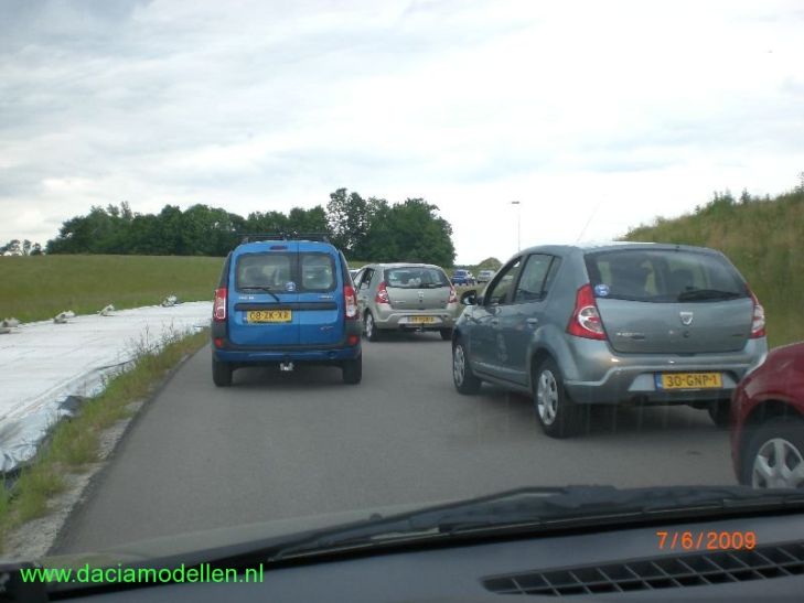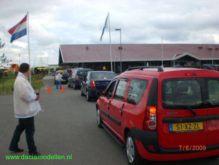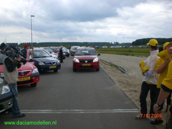 Met het weer hebben we weer geluk gehad. Ik ben vanaf huis vertrokken met een beetje regen maar dat was al snel afgelopen. Vervolgens is het tijden de pre-meeting en de eigenlijke meeting droog gebleven. Het was wel bewolkt en een beetje fris maar dat mocht de pret niet drukken. Vervolgens was het tijd om aan de record-poging te gaan beginnen. Volgens de regels van het Guiness Book of records moest de hele stoet in beweging zijn. Het ging in dit geval om 355 Dacia's die aan de poging meededen.