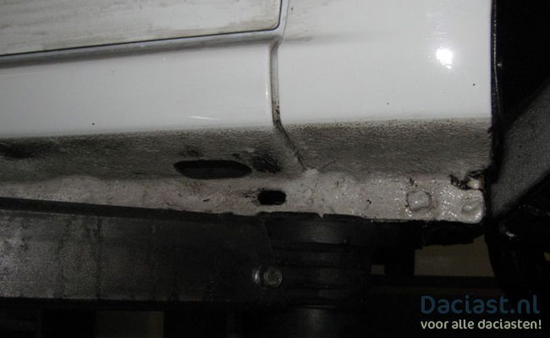 Hoewel de keuze misschien enigszins beperkt is bij Dacia, zijn er naast de drie uitrustingsniveaus toch nog wel wat opties om uit te kiezen. Natuurlijk kan het nog steeds zo zijn dat de opties die je graag zou willen, niet leverbaar zijn. Gelukkig zijn er aardig wat bedrijven die een handje kunnen helpen. Zo ook bij Jacq, die zijn splinternieuwe Dacia volledig naar zijn eigen hand zette. In september heb ik een MCV 1.5 dCi besteld bij de Dacia Store in Arnhem. Belangrijkste punt van twijfel was nog de kleur. Het werd of antraciet of wit. Antraciet is veilig en algemeen geaccepteerd, wat een pre is bij inruil. Wit vind ik echter veel leuker en frisser. En ik koop mijn auto om nu in te rijden en niet om straks in te ruilen. Het probleem bij veel witte auto's is dat ze na een tijdje wat sjofel uitzien omdat vuil gaat inwerken. De mooie spierwitte auto wordt dan meer een grijsachtig witte auto, zonde dus. Verder had ik op de fora en het Autoweek tevredenheidsonderzoek al gelezen dat de laklaag niet het sterkste punt van de Dacia is. De stoute schoenen aangetrokken en besloten om voor de witte te gaan en het geld dat ik uitspaar voor de metallic lak, te gebruiken voor een lakbescherming. De auto is 11 november geleverd en de witte kleur staat hem prachtig! De dag erna heb ik de auto gelijk naar TSR in Vriezenveen gebracht voor de behandeling. De laklaag wordt ingewreven met Teflon (PTFE). Op de foto is de medewerker van TSR aan de slag met mijn auto. Dat aanbrengen gebeurt in twee fasen. In fase 1 worden de porien in de laklaag gevuld. In fase 2 wordt een beschermende laag aangebracht.>Na een nacht uitharden mocht ik de auto weer ophalen en ik was positief verrast. De laklaag voelt zeer glad aan. De sponningen van de deuren zijn ook keurig meegenomen. De toekomst moet nu uitwijzen of vuil, insecten en uv-straling inderdaad minder kans krijgen om te hechten. Een vaak gehoord punt van kritiek bij Dacia is dat de afwerking toch wat minder is dan bij de grotere merken, zoals bijvoorbeeld grote zus Renault. Ook de rand onder de portieren laat qua afwerking toch wel wat te wensen over. Een optie is natuurlijk om de rand zwart te laten spuiten, zodat deze minder opvalt. Jacq heeft dit bij de Dacia Store laten doen, en hieronder zie je het bekende "voor" en "na" plaatje!