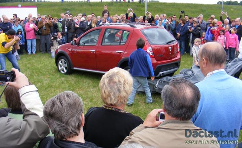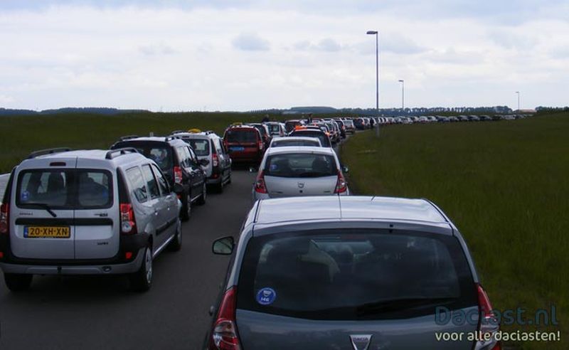 Vandaag vond in Biddinghuizen alweer de vierde Dacia meeting plaats. Hoewel het weer aanvankelijk wat roet in het eten dreigde te gooien, bleef het toch de gehele dag droog, en heeft ook de zon zich nog even laten zien. Een aantal mensen koos ervoor om 's ochtends bij de Dacia Store in Arnhem te verzamelen, en vanaf daar gezamenlijk naar Biddinghuizen te rijden. De reis erheen begon gelijk al goed, met een mooie tocht over de A50 (dwars door de Veluwe) en vanaf Epe binnendoor. Een mooi stuk Nederland om op een rustige zondagmorgen te rijden. Rond kwart voor 11 kwam de groep aan in Biddinghuizen, waar we konden registreren voor de recordpoging later op de dag. Even na twaalven werd de primeur onthuld, en het zal niet veel mensen verbaasd hebben dat het de Dacia Sandero Stepway betrof. Over niet al te lange tijd zullen we deze ook bij de Nederlandse dealers zien staan. Na de onthulling was het tijd om te gaan file-rijden. Ongelooflijk eigenlijk, dat in een land waarin we dagelijks al geplaagd worden door lange files, we vervolgens voor onze lol op zondagmiddag een file gaan veroorzaken! Het kostte nogal wat tijd om alle auto's rijdend te krijgen, en het was wel even spannend of we genoeg rijdende auto's voor de recordpoging hadden. De notaris bracht gelukkig het verlossende antwoord: maar liefst 355 auto's reden mee, ruim voldoende voor een record! Hieronder vind je een foto-impressie van de meeting. Al met al vond ik het een geslaagde dag... Volgend jaar weer? :)