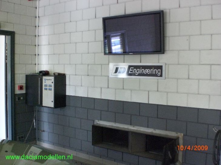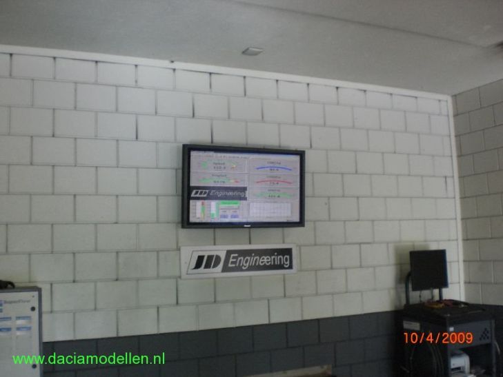 Natuurlijk moeten de gemeten waarden ergens op worden weergegeven; Daarvoor is een groot beeldscherm opgehangen dat goed zichtbaar is vanaf de bestuurdersplaats. De medewerker die de test uitvoert neemt namelijk apparatuur mee in de auto om de rollenbank te bedienen. Met het grote scherm goed zichtbaar heeft hij tenminste de controle over de installatie.