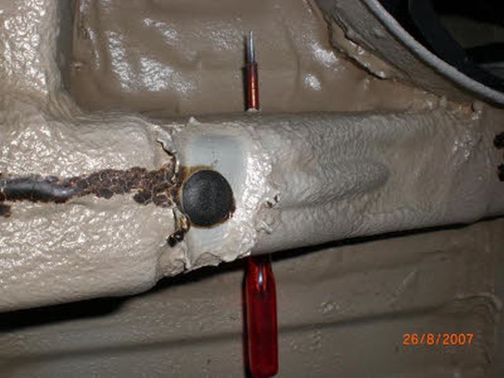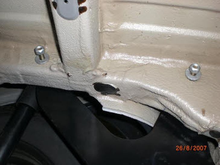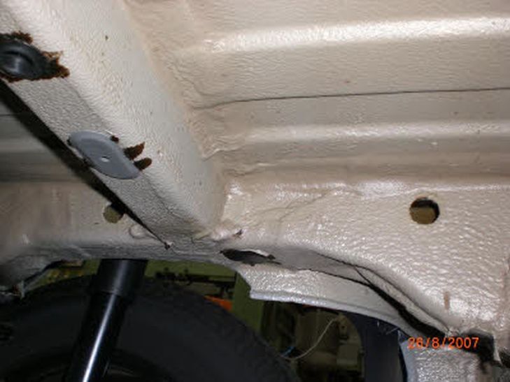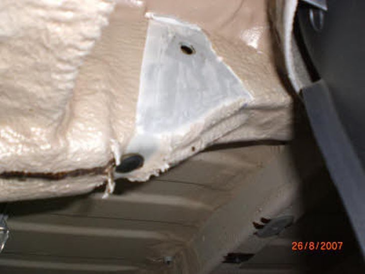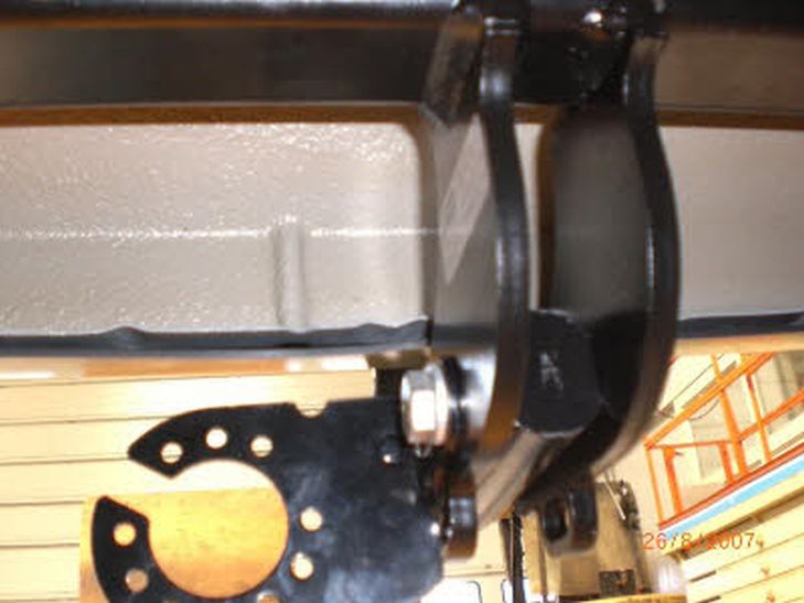 namelijk hier de montagebeugels van de trekhaak op monteert, dan zul je die nooit goed vast kunnen draaien. Het is dus belangrijk om deze laag te verwijderen op de plek van de montagebeugel. Als de beugel gemonteerd zijn ziet het eruit als op foto 6. (bij de