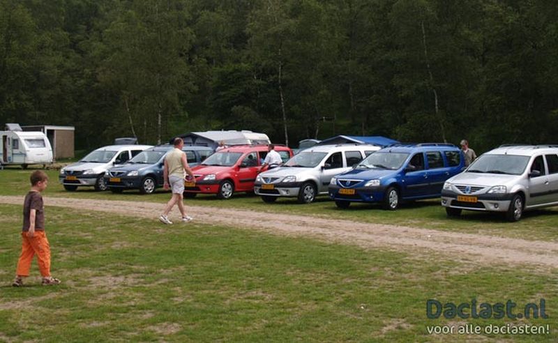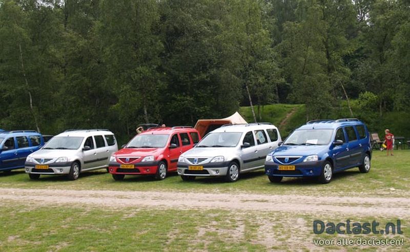 Van Jan ontvingen we een aantal foto's van de allereerste Dacia meeting, en hoe hij Daciast werd... Het begon allemaal in 2006, toen Jan op zoek was naar een vervanging voor hun Renault Kangoo. Ze waren al wel gaan kijken naar de Logan (sedan), maar door het ontbreken van een opklapbare achterbank was dit model afgevallen. Wel wist de dealer hun te vertellen dat er een station in de planning stond, en daar besloten ze op te wachten. In februari 2007 reed Jan achter een vrachtwagen met daarop een MCV, en is hij de vrachtwagen gevolgd naar de plaatselijke Reanult dealer in Almere. De volgende dag kwam hij terug met zijn vrouw, en stond de MCV al compleet op kenteken. Een proefrit was snel gemaakt, waarna direct de knoop werd doorgehakt voor een rode Logan MCV Laureate met de 1.6 16v motor. Gelukkig had de dealer al 10 productieplaatsen besteld, en kwam de MCV in mei 2007 binnen. Op dat moment begon de belangstelling voor de MCV aanzienlijk toe te nemen, en waren de 1.500 exemplaren in no-time uitverkocht. In die tijd werd ook Ger's site opgericht, waar de Daciasten van het eerste uur informatie met elkaar konden uitwisselen. Zodoende kwam ook het verzoek voor een meeting, zodat mensen de auto in het echt konden zien, en vragen konden stellen aan de eigenaren. De meeting vond op 3 juni 2007 plaats in het Doornse Gat, waar ook de tweede en derde meeting zijn gehouden. Voor de eerste meeting waren vijf toezeggingen, maar uiteindelijk kwam bijna het dubbele aantal: negen MCV's! Dat is toch wat anders dan de 355 Dacia's die we op de laatste meeting zagen!