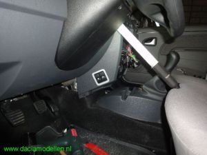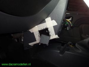 Links en rechts onderin de middenconsole aan de zijkanten is een heel stuk vrij. Daar zouden heel goed schakelaars geplaatst kunnen worden. Dus ik heb gecontroleerd of er voldoende ruimte achter zit in verband met de inbouwdiepte van de schakelaars. En die is voldoende, ruim voldoende zelfs. Ik had al een deel uit een ander frontpaneel gezaagd waarin de schakelaars geplaatst moeten worden. Dit deel heb ik nog maar eens kleiner gemaakt. Het is opgedeeld in drie delen: 1x een inbouwdeel voor de schakelaar ten behoeve van de alarmlichten, 1x een inbouwdeel voor de raamschakelaar links samen met de schakelaars van de achterruitverwarming en 1x een inbouwdeel voor de raamschakelaar rechts samen met de schakelaar van de protiervergrendeling.