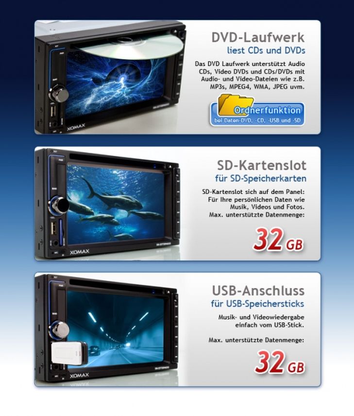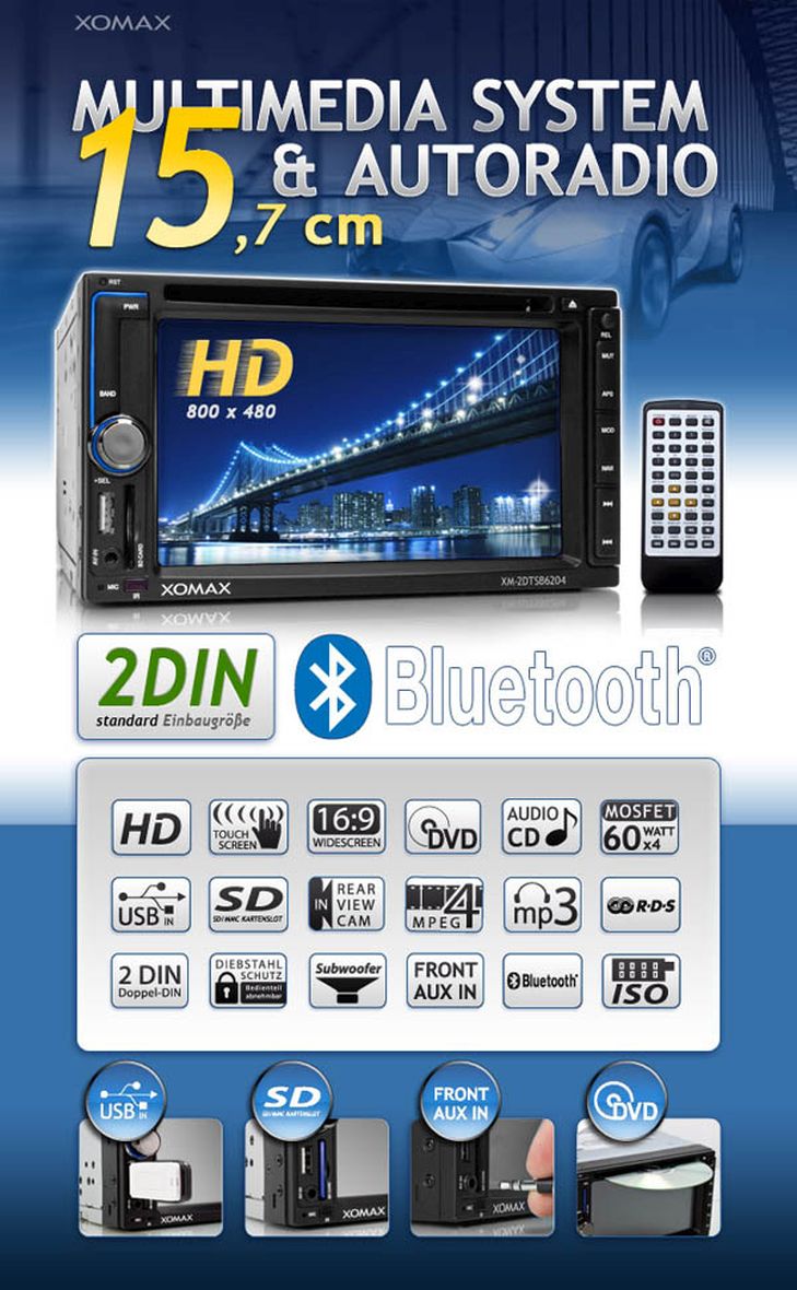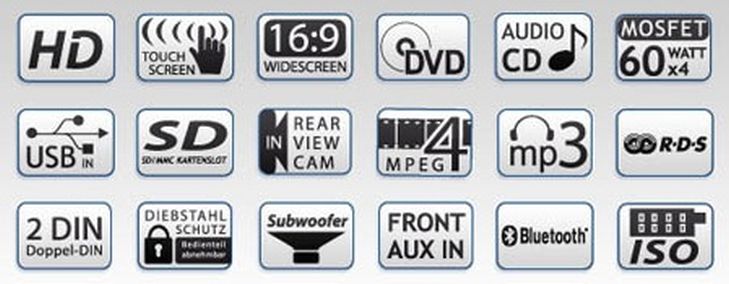 Het systeem blijkt behoorlijk compleet te zijn. Zoals je hiernaast kunt zien speelt het apparaat diverse media af, heeft een afneembaar front en heeft Bluetooth. Zoals aangegeven heeft dit apparaat geen navigatie. Goed, het wordt eens tijd om aan te sluiten. De gebruikershandleiding had ik al doorgenomen. Dit kostte niet veel tijd aangezien dit niet veel voorstelde. Puntje van kritiek. Bij de gerennomeerde merken krijg je er altijd een heel boekwerk bij of een versie op cd. De handleiding bij deze radio behandeld alleen het meest noodzakelijke en de rest mag je zelf uitzoeken. Bij het inschakelen blijkt ook meteen de kleur van de verlichting: namelijk blauw (was overigens wel bekend;stond al in de advertentie bij EBAY). Deze kleur is niet instelbaar zoals op veel modellen van een hogere prijsklasse wel het geval is. Het HD-scherm geeft een scherp beeld weer. Eerste punt van kritiek (summiere handleiding) blijkt minder van belang omdat de bediening zeer eenvoudig is. Aan de voorzijde bevindt zich het slot voor zowel USB-stick als ook de SD-kaart. Beiden mogen maximaal 32 GB groot zijn. Het loopwerk leest: CD/-R/-RW, DVD/+/-R/+/-/RW. Formaten zoals CDA, MP3, MPEG4,WMA en JPG zijn geen probleem. Alles wordt keurig weergegeven in overzichtelijke mappen. Het radio gedeelte is voorzien van diverse functies zoals: RDS, AM en Fm band, 30 voorkeuzezenders, automatisch zenderzoeksysteem, EON, ASM/AF,PTY en REG (dit laatste houdt de zender vast als je een tunnel inrijdt). Ook Bluetooth is aanwezig. Door middel van een microfoon die in het front zit wordt de spraak opgenomen; weergave geschiedt netjes via de luidsprekers. Ondersteuning voor A2DP is ook aanwezig. Ook externe aansluitingen zijn ruim voorhanden. Een camera kan worden aangesloten , aansluiting voor 2 externe beeldschermen, ingang voor video, ingang voor audio, AUX ingang aan de voorzijde van de radio, zelfs een aansluiting om een subwoofer aan te sturen ontbreekt niet! Ondertussen heb ik het systeem een paar dagen kunnen gebruiken. En het moet gezegd: alles is volledig naar wens. De Pioneer speakers komen nu veel beter tot hun recht. Ontvangst is zeer goed. Beeldkwaliteit is uitstekend te noemen. Ik kan tevreden terugkijken op deze ombouw. Hoewel het wel veel werk was is het eindresultaat geheel volgens verwachting. Hieronder volgen nog een paar foto's van het eindresultaat. Mochten er nog vragen zijn dan wil ik die graag beantwoorden.
