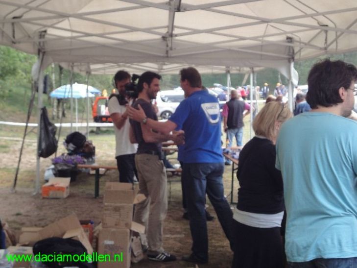 Voor de inwendige mens was ook aandacht: er was voldoende mogelijkheid om bijvoorbeeld koffie te halen of eten zoals patat, snacks of broodje hamburger (tegen inlevering van toegoedbonnen die bij inschrijving werden uitgedeeld). Dacia Nederland bestaat vijf jaar en daarom had men (vanwege het grote aantal inschrijvingen) ruim 2200 ! gebakjes laten komen met een eetbaar logo er boven op!. Dat hebben we ons laten smaken. Ook aan merchandising was geen gebrek. Schaalmodellen, t-shirts, dorpelbeschermers met instapverlichting en nog veel meer was aanwezig. Vorig jaar is er met een activiteit gestart die waarschijnlijk wel traditie zal worden, namelijk de verkiezing van de mooiste Dacia. Hiertoe liep de jury over het park om een 10-tal dacia's te nomineren. Hieruit is een top-3 gekozen. Op de derde plaats is een rode pickup op aardgas ge-eindigd. Op de tweede plaats eindigde een blauwe Duster. De eerste plaats was wel een heel internationale benoeming. Deze is namelijk gewonnen door Geoffrey. Geoffrey heeft als Engelsman in een Roemeense auto met een Duits kenteken gewonnen in Nederland. Het filmpje hieronder van de uitslag van deze verkiezing is gemaakt door Gerrit: