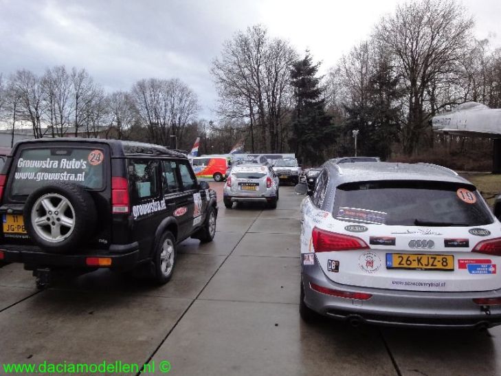 Het weer was gelukkig geen spelbreker vandaag; we hielden het nagenoeg droog en zelfs de zon heeft zich nog even kortstondig laten zien. Toen ik aankwam tegen 9:45 was het op de parkeerplaats waar de deelnemers stonden nog niet druk dus ik had mooi de kans om foto's te maken van diverse deelnemers, maar de meeste foto's zijn uiteraard van de Dacia Duster gemaakt.