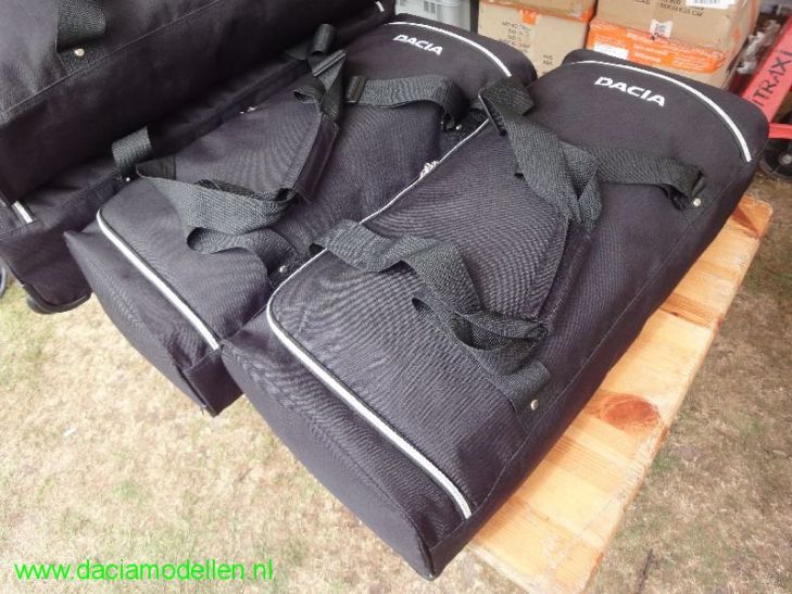 Met deze tassenset kan men voor de dag komen. ze zijn keurig afgewerkt; zou de naam Dacia er niet op staan dan zou je ze in de premium-klasse kunnen aantreffen. Op dit moment bestaat deze set alleen voor de Duster en is dus daarvoor op maat gemaakt. Dit wil echter niet zeggen dat je ze in de MCV niet zou kunnen gebruiken. Dan zul je echter nog wat ruimte overhouden...