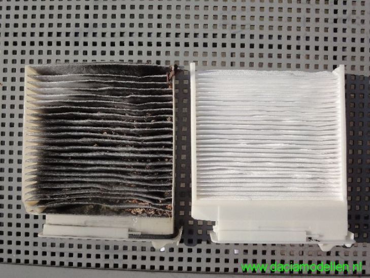 Ik heb in mei 2009, net voordat deze site in de huidige versie online kwam, een pollenfilter geplaatst. Standaard waren de Dacia's destijds nog niet voorzien van een dergelijk filter. Dat betekende dus op de kop onder het dashboard duiken inclusief een scherp stanleymes om de opening uit te snijden in de lucht-unit. Deze opening was al voorgestanst zodat goed duidelijk te zien was wat er uitgesneden moest worden. Ik had er eigenlijk al een hele tijd niet meer aan gedacht, aan dit filter. Totdat ik afgelopen weekend tijdens het opruimen een nieuw filter tegenkwam. Ik had destijds zowel bij de dealer als bij een gewoon bedrijf een filter gehaald. Dus ik heb gelijk maar even de moeite genomen (nou ja, moeite...) om het filter te wisselen. Moeilijk is het niet om het filter te vervangen. Ik zou haast zeggen dat het uit de verpakking halen van het filter meer tijd kosten dan het plaatsen ervan.