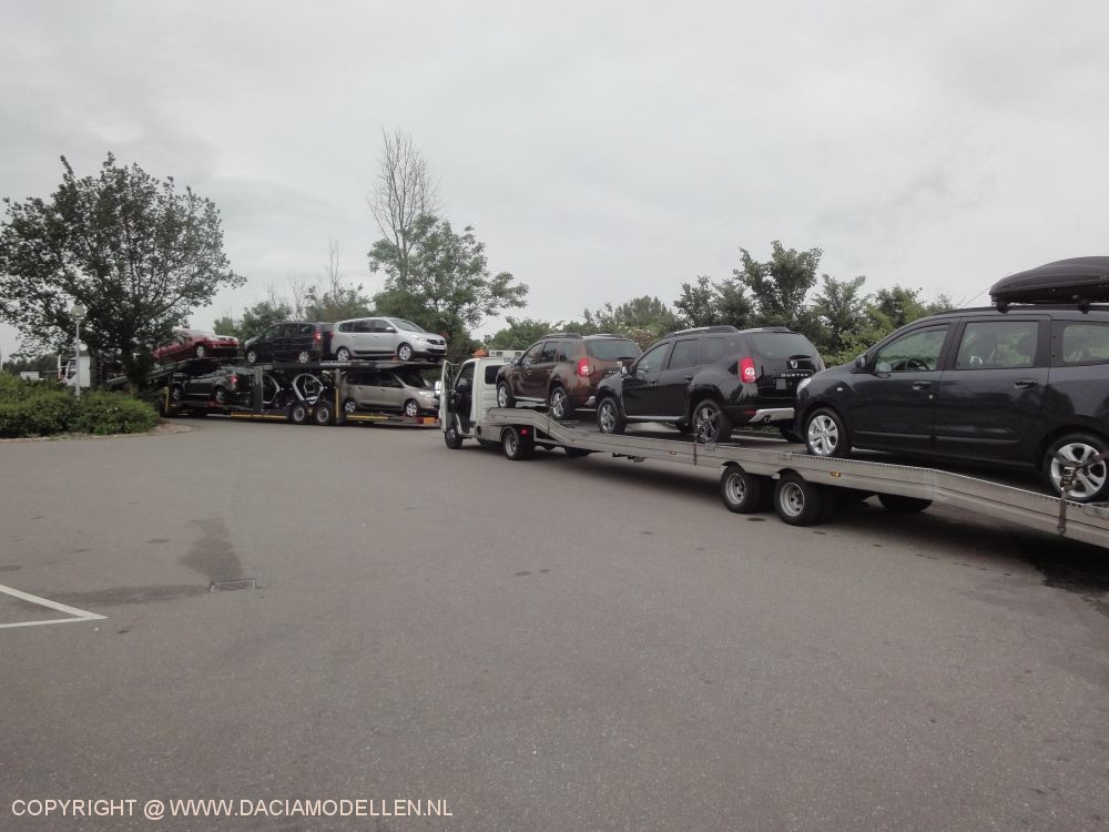 In het stukje van gisteren zie je een kort filmpje van de transporter waarmee een deel van de Dacia's gebracht is. Er zijn echter ook nog 2 Dusters en een Lodgy met een BE-combinatie gebracht.
