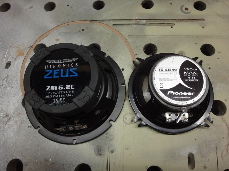 Maar aangezien ik nu het audio-systeem nog verder ga aanpassen heb ik ook aan de Pioneer speakers niet genoeg die ik nu in de auto heb. Deze kunnen een vermogen aan van 25 Watt RMS. Met de versterker die geplaatst gaat worden zullen deze geen lang leven meer hebben; daarom ga ik andere speakers plaatsen die het wel aankunnen.