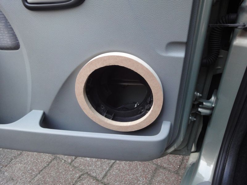 Dit houdt echter in dat ik naar speakers ga van een andere diameter. Deze passen echter niet standaard in de deur dus is er werk aan de winkel. In eerste instantie was het de bedoeling om de huidige houder aan te passen. Dit werd echter lastig omdat deze namelijk niet overal even dik is. Een andere optie is het maken van luidspreker-ringen. Hiermee zet je de luidspreker iets verder naar voren waardoor de magneet in de originele houder past. Tevens kun je door deze ringen op de juiste maat te maken ook grotere speakers plaatsen.