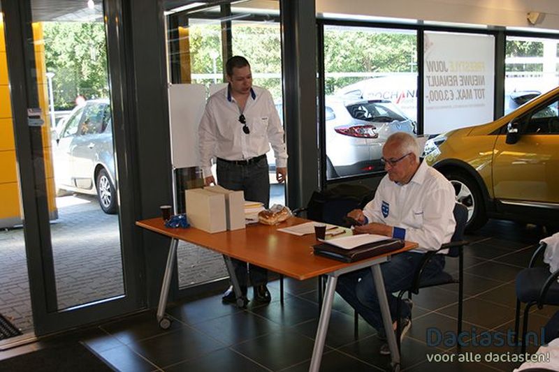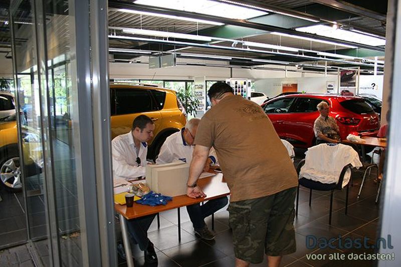 Het lijkt wel of we een abonnement op mooi weer hebben genomen voor de puzzelritten, want ook deze puzzelrit wordt weer onder stralende weersomstandigheden verreden. Om 10.00u konden we reeds de eerste deelnemers begroeten bij Bochane Nijmegen. Voor koffie, thee, fris en een koekje is gezorgd, en na het genot hiervan vertrok om 10.45u de eerste deelnemer voor de Dacia Puzzelrit 2014. Deze keer wordt de rit verreden vanuit Nijmegen en doen we onder andere Groesbeek en Breedeweg aan, voordat we Duitsland in duiken en onder andere Grafwegen, Kranenburg, Kleve, Asperden en Kessel aan doen. De rit gaat vervolgens via Milsbeek, Breedeweg en Groesbeek weer terug naar Bochane Nijmegen. Met 27 deelnemende auto's en zo'n 75 aanwezigen hebben we een gezellige club voor vandaag. Straks zal de frietkraam komen om alle terugkerende deelnemers om 17.00u van een lekkere bak friet en snacks te voorzien. Hieronder volgt een korte sfeerimpressie van de ochtend, en de start van alle deelnemers.