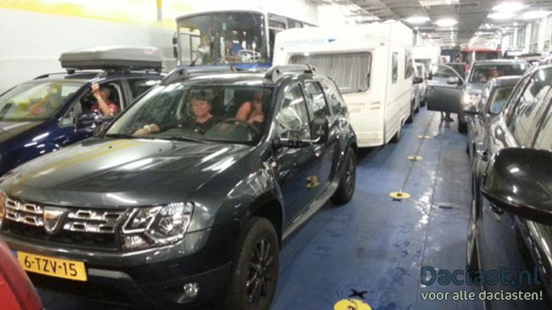De Duster heeft zich heel goed gehouden. Ik was even bang dat het 1200cc motortje moeite zou hebben met mijn caravan (1000 kilo), maar daar was geen sprake van. Moeiteloos sleurde hij de caravan tot voorbij legale snelheden. In Engeland mag je 96 km/uur rijden met de caravan. In de zesde versnelling draait de Duster dan zo'n 2000 toeren. Als het rustig is, kan je met een streepje gas erbij vlot een vrachtwagen inhalen. Moet het wat sneller, dan schakel je terug naar zijn vier en de Duster trekt soepel door naar 110 of harder. Mag niet (wel in Frankrijk), maar is soms wel handig dat het kan. Ook hellingen kan je goed in zijn vier nemen. De caravan hangt er rustig achter. Mede doordat de achterwielen vrij ver naar achteren staan. De vering vind ik wat aan de slappe kant. Met drie volwassenen en de caravan, zakt hij aan de achterkant flink door. Zeker 15 centimeter. Zonder achterpassagier gaat het beter. Maar als je met vier personen in de Duster gaat en een caravan, zou ik zeker kijken voor een paar hulpveren. Optrekken (bij invoegen op de snelweg bijvoorbeeld) en flink doortrekken in de versnellingen, wil, met de caravan erachter, nog wel eens wat wielspin opleveren. Vooral als de weg nat is. Ook voel je de voorwielen dan in het stuur wat naar links en rechts trekken. Alsof hij het vermogen dan niet goed kwijt kan. Maar als je in de versnellingen tot zo'n 5000 toeren doortrekt, kan je vlot invoegen bij de rest van het verkeer. Ik vind de Duster lekker rijden. De stoel zit lekker, de zitpositie is goed, zeker met de optionele armsteun. De vakjes in het dashboard komen op een vakantie goed van pas. Ook de vakken in de deuren. Fototoestel, flesje water, kaartjes voor slagbomen, telefoon. Ook het handschoenen kastje heeft veel ruimte. De bekerhouders zijn onbruikbaar voor bekers of blikjes. Maar voor brillen, sleutels enzo, zijn ze goed geschikt. De achterpassagier is wat minder bedeeld. Die heeft alleen maar een netje. Ik mis daar de vakjes in de deuren. Technisch hebben een we een paar keer een onwillige airco gehad. Het leek de eerste keer of een een blaadje in het luchtkanaal zat. Je hoorde iets rammelen, maar er kwam geen koellucht meer uit de ventilatieopeningen. Ook leken er stukjes papier naar buiten te komen. Dit gebeurde vlak voor de camping. Nadat we de caravan hadden neergezet, heb ik weer even gekeken en toen werkte alles weer naar behoren. De tweede keer hetzelfde, alleen nu kwam er witte rook uit de ventilatieopeningen. Het bleek condens. Ook de verwarmingsknop zat vast. Ik heb de airco uitgezet. Na een half uurtje deed alles het weer. Ik denk dat het condenswater van de airco bevroren is geweest. In de ventilatieopeningen was het steenkoud. Het valt mij ook op hoeveel condenswater er onderuit loopt als je geparkeerd staat na een lange rit. Ik moet dat bij de dealer eens navragen. Verder geen druppel olie verbruikt. Koelwater keurig op niveau. Dat heb ik bij nieuwe auto's wel eens anders gezien. Ik heb zo'n 2000 km met de caravan gereden en zo'n 2000 km zonder (we kunnen moeilijk stilzitten...) Het verbruik kwam uit op 1:10. De Duster heeft mij heel positief verrast. Hij doet het als caravantrekker beter dan mijn vorige Zafira met meer pk's. Oene