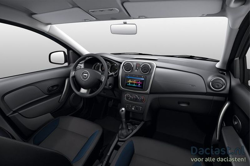 De kleur blauw komt ook subtiel terug in het interieur, met accenten op de stoelbekleding en veiligheidsgordels in blauw. De stoelbekleding is afgewerkt met grijze sierstiksels. Als finishing touch zijn de vloermatten voorzien van een subtiele blauwe rand (uitgezonderd de Lodgy en de Dokker). Rijke uitrusting