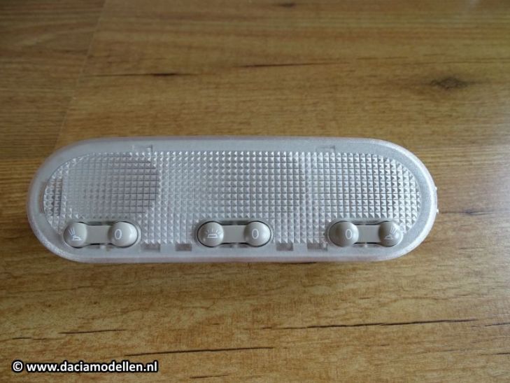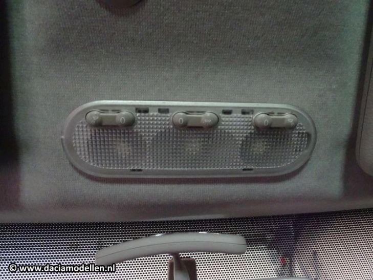 Dacia heeft eenvoudige binnenverlichting toegepast met alleen maar een aan/uit stand en 1 gloeilampje per armatuur. Deze verlichting kun je met een knopje zelf aan/uit zetten en het gaat aan als je de deur open doet; en vertraagd weer uit. Tot zover niets bijzonders.