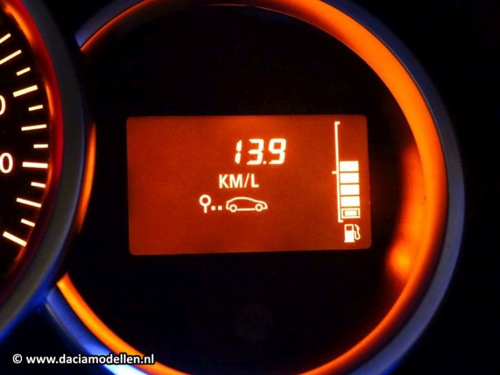 Deze waarde geeft het verbruik weer tijdens het rijden en wisselt dus heel erg. Dit is namelijk afhankelijk van je rechtervoet. Ook deze waarde wordt normaal in liters per 100km weergegeven. Bij mijn Lodgy is dit dus ook gewijzigd in kilometer/liter (wordt weergegeven vanaf een snelheid van 30kmh):