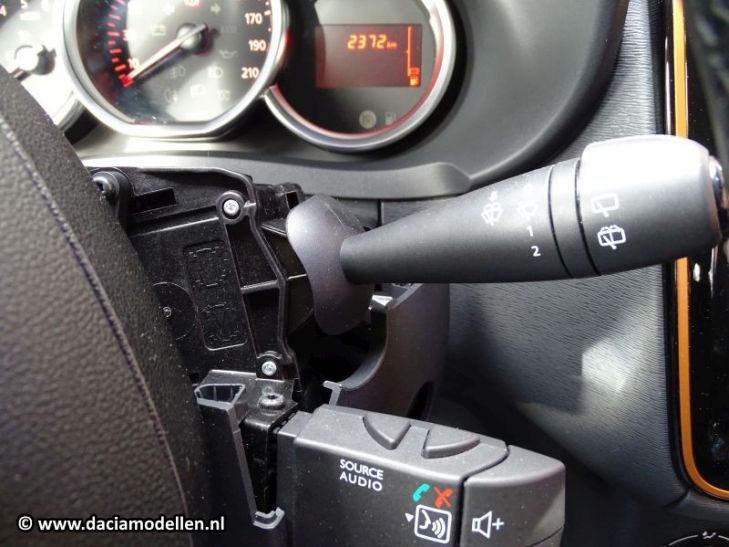 Deze ga ik vervangen door de ruitenwisserhendel van de Clio IV (bestelnummer 255671163R). Deze kent meerdere standen: