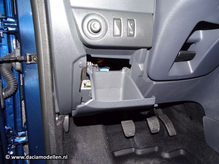 Om eerlijk te zijn weet ik zo niet waar de OBD-poorten bij de verschillende modellen zitten. Bij mijn Lodgy zit deze in ieder geval links van het stuur, achter een kapje. Het is feitelijk een opbergvakje dat je iets naar voren kunt trekken. Als je het echter geheel verwijderd (gaat eenvoudig) dan krijg je zicht op zowel het zekeringenblok alsook de OBD-poort.