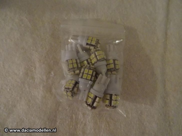 Juist omdat deze op meer plekken dan alleen bij het kentekenwordt toegepast in de Dacia, ben ik op zoek gegaan naar vervangende lampen maar dan uiteraard in LED-uitvoering. Er zijn veel leveranciers in Nederland die LED-vervangers aanbieden. Echter vond ik ze nogal duur. Dus ik ben maar eens “over de grens” gaan kijken en kwam hierbij (hoe kan het haast ook anders) in China terecht.