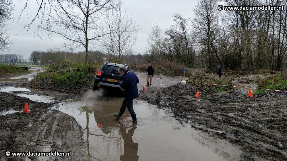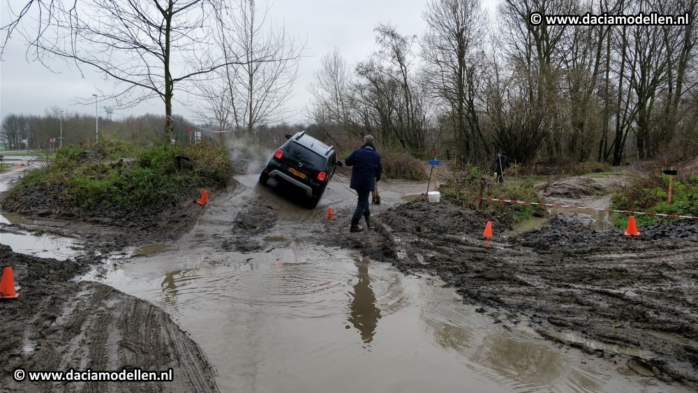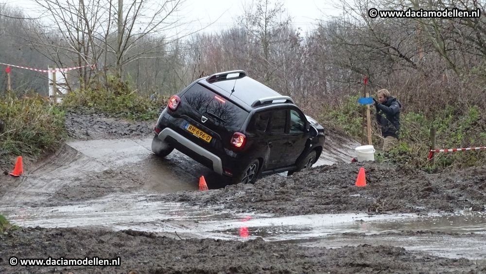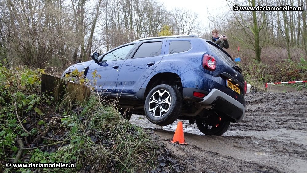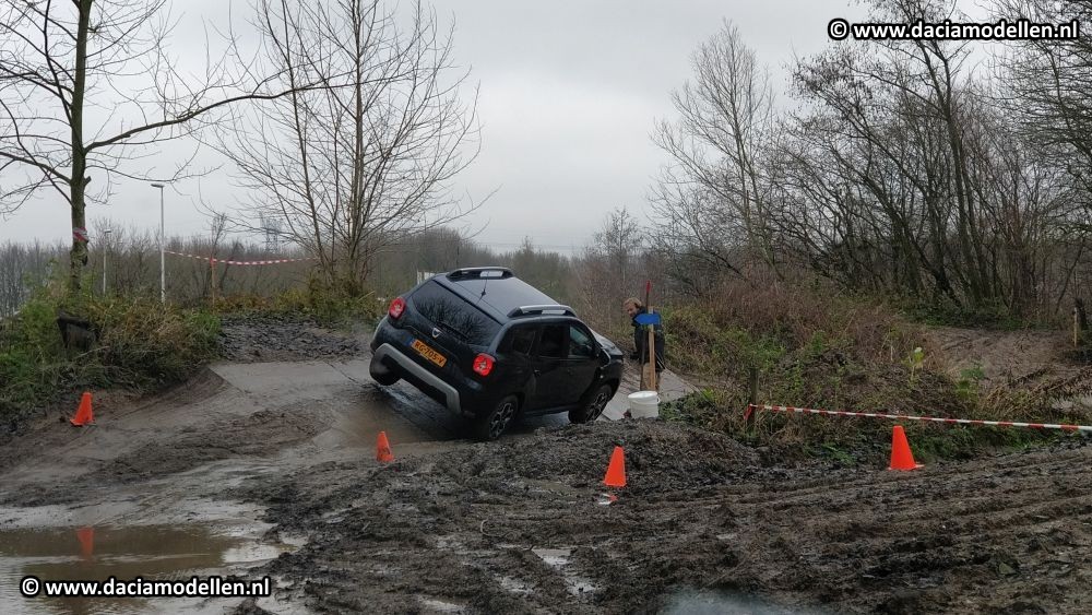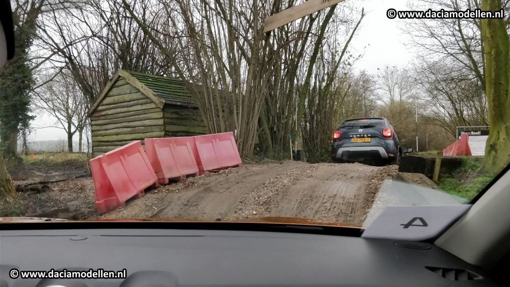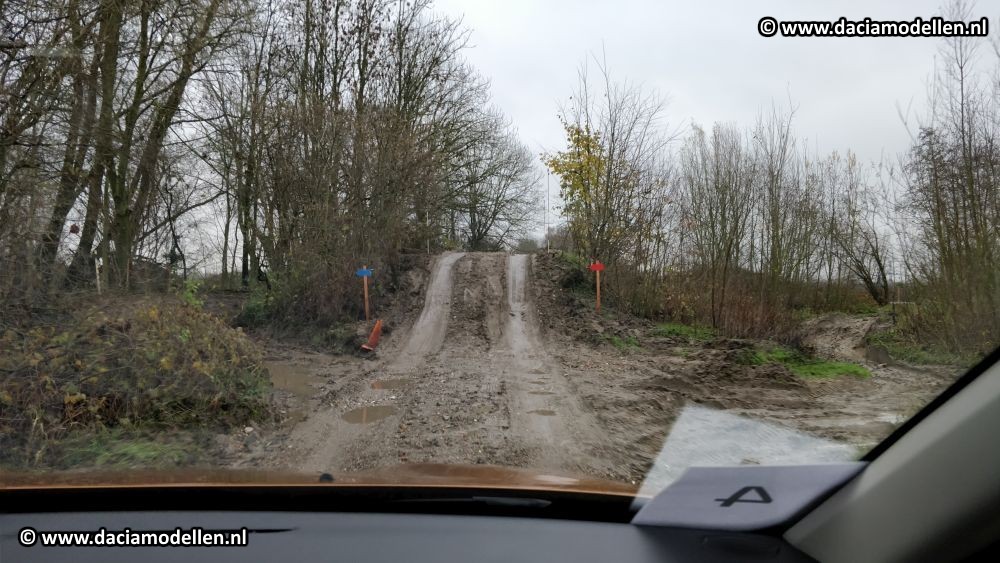 nog een keer zeggen en heb de Duster schuin naar boven gereden. En dat voelt wel een beetje vreemd. Als je de auto over de lengte-as schuin