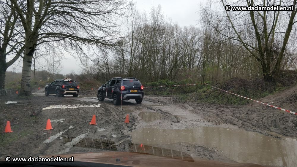Ik mocht samen met mijn zoon direct met de eerste groep mee om te gaan rijden. Er stonden voor dit doel 8 Dusters 4WD klaar om de modder