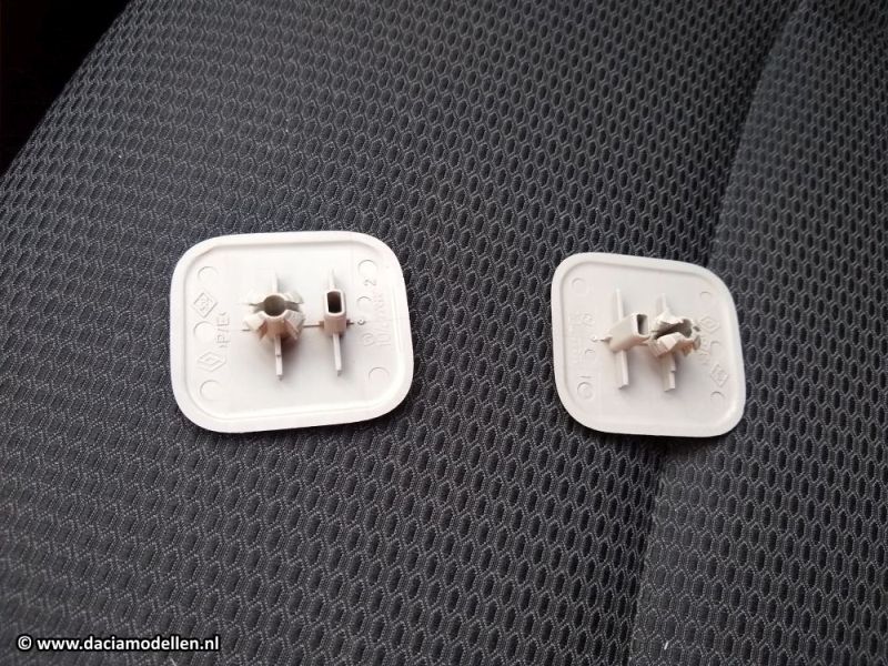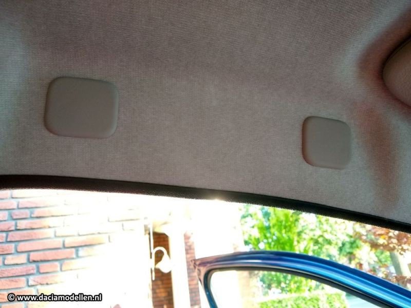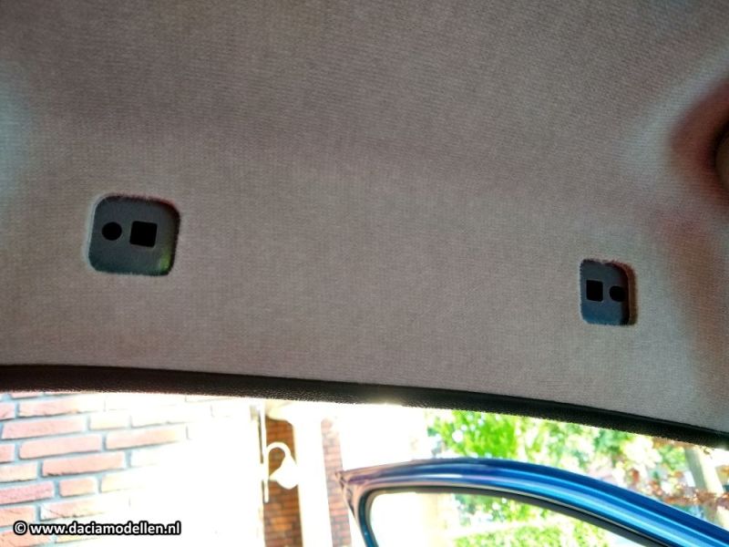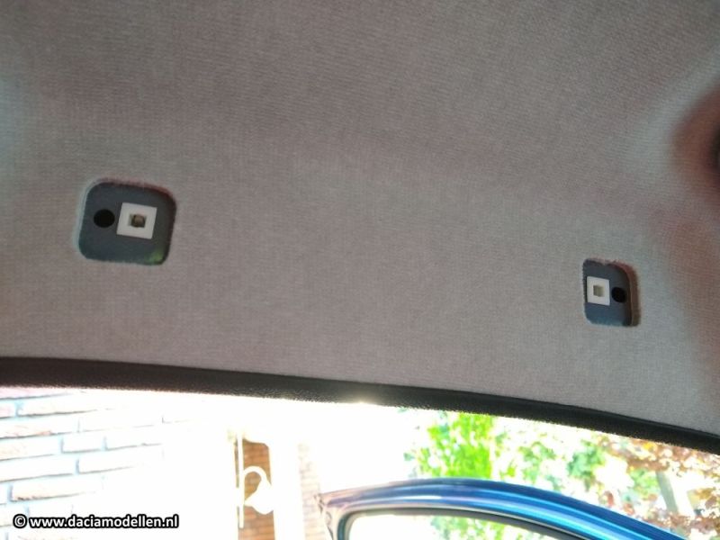 Aan de bestuurderszijde zijn boven de deur twee vierkante plastic plaatjes te zien. Deze kun je eenvoudig verwijderen door er een schroevendraaier achter te zetten. Als je een beetje kracht in je vingers hebt dan kan het zelfs zonder de schroevendraaier.