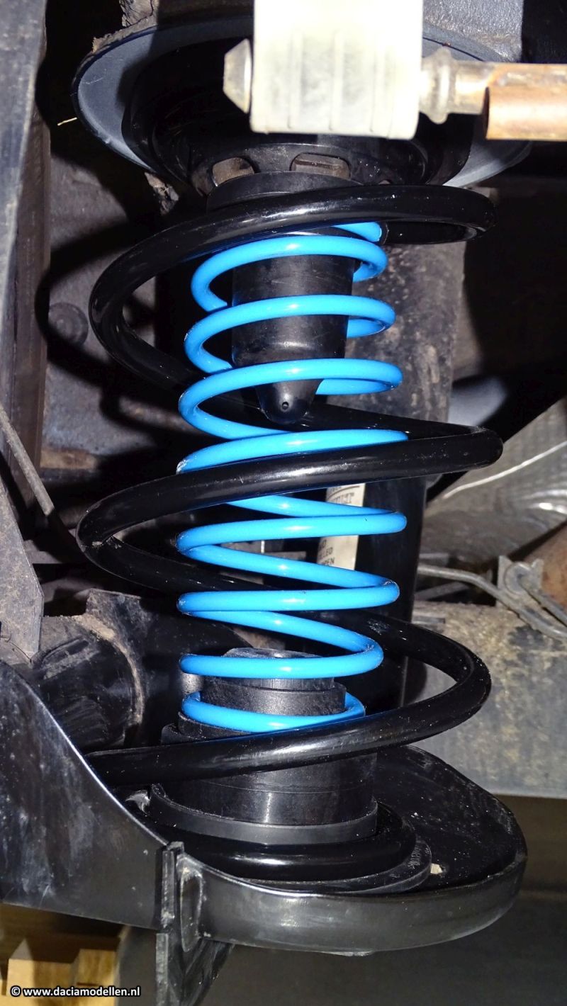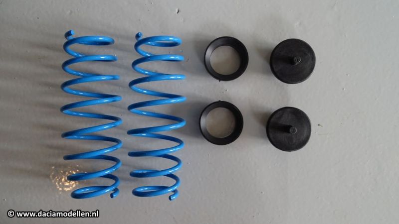 Na het arriveren van de set werd het tijd om maar eens aan de werkzaamheden te beginnen. In de doos zitten twee mooie blauwe veren (nee, er is geen keuze in kleur). Ook bijgeleverd zijn extra veerschotels voor de nieuwe veren. Maar wat ook handig is: een handleiding in het Nederlands, met foto's!