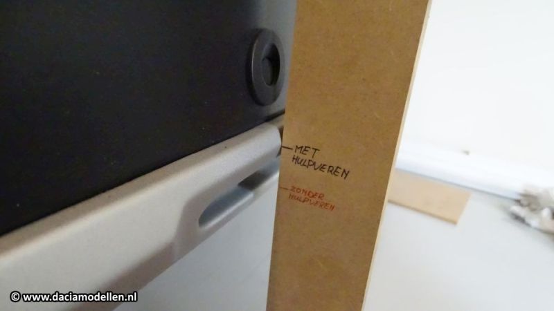Diverse filmpjes op het internet laten zien dat je de hulpveer zo in de hoofdveer draait en dat je zo klaar bent. Nou, dat is in ieder geval niet zo bij de Lodgy. Je begint met de auto zo neer te zetten dat je rondom voldoende ruimte hebt. Je moet namelijk aan beide zijden tegelijk werken! Dit heeft te maken met de stijfheid van de achterbrug.