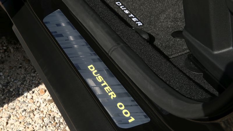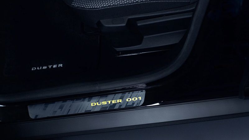 De auto is voorzien van diverse accenten, voornamelijk aan de buitenzijde. Maar als je de bestuurderdeur opent dan je je een dorpelbescherming met daarop het nummer van je Duster.