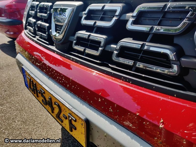 Tot aan Harderwijk hebben we dezelfde weg teruggenomen om dan via Ermelo,Putten, Voorthuizen, Barneveld, Lunteren naar Ede af te zakken. Vanaf Ede via de N224 weer naar Arnhem om ons weer te melden bij de Bochane vestiging om de TCe 130 weer in te leveren. Hij was niet meer zo schoon als bij het begin van de dag; Insecten hebben zich in grote getale vastgeplakt aan de voorzijde. en één nadeel van de prachtige rode lak heb ik wel gevonden: Bij het foto's maken van de auto bij het kunstwerk waren de zwermen met vliegjes ook dol op deze kleur.