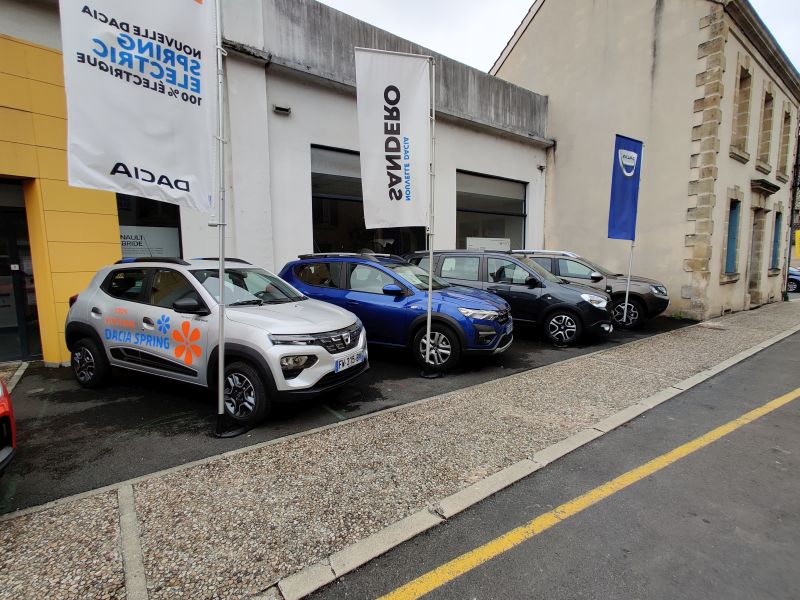 Ik ben de "Spring" nog niet rijdend tegen gekomen maar bij de Dacia-dealer in Sarlat la Caneda (Dordogne) stond hij buiten te schitteren. Ik kon dan ook niet anders dan mijn Lodgy aan de kant zetten, uitstappen en een paar foto's maken. Overigens is Sarlat la Caneda de moeite waard om te bekijken als je van prachtige oude steden houdt.