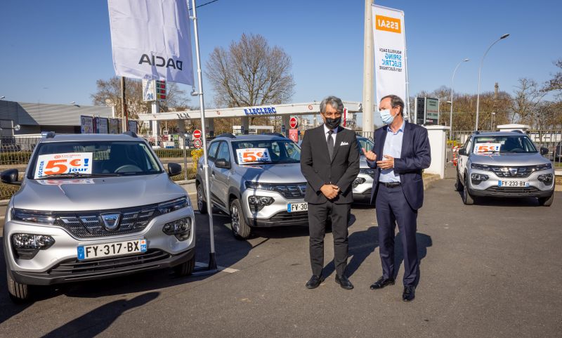 De aftrap in uiteraard in Frankrijk. Binnen een paar maanden zullen er zo'n 4000 stuks elektrische voertuigen via E. Leclerc te huren zijn. Deze zijn dan onderverdeeld in 3000 stuks van de Dacia Spring en 1000 stuks van de Renault ZOE.