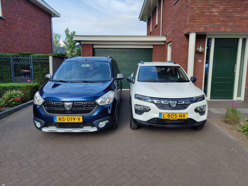 Om een vergelijk te maken zie je hieronder een viertal foto's waarop de "Spring" te zien is met de beide Dacia's hier in mijn huishouden: