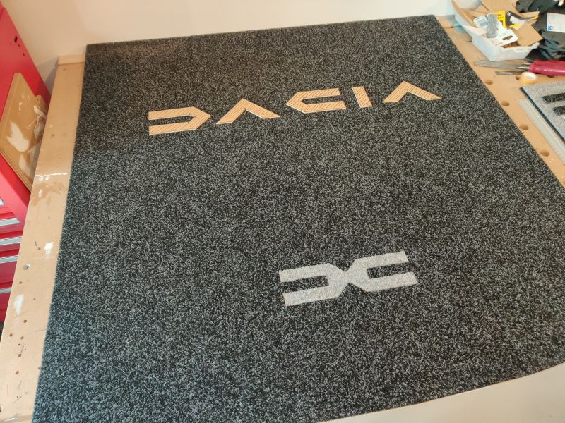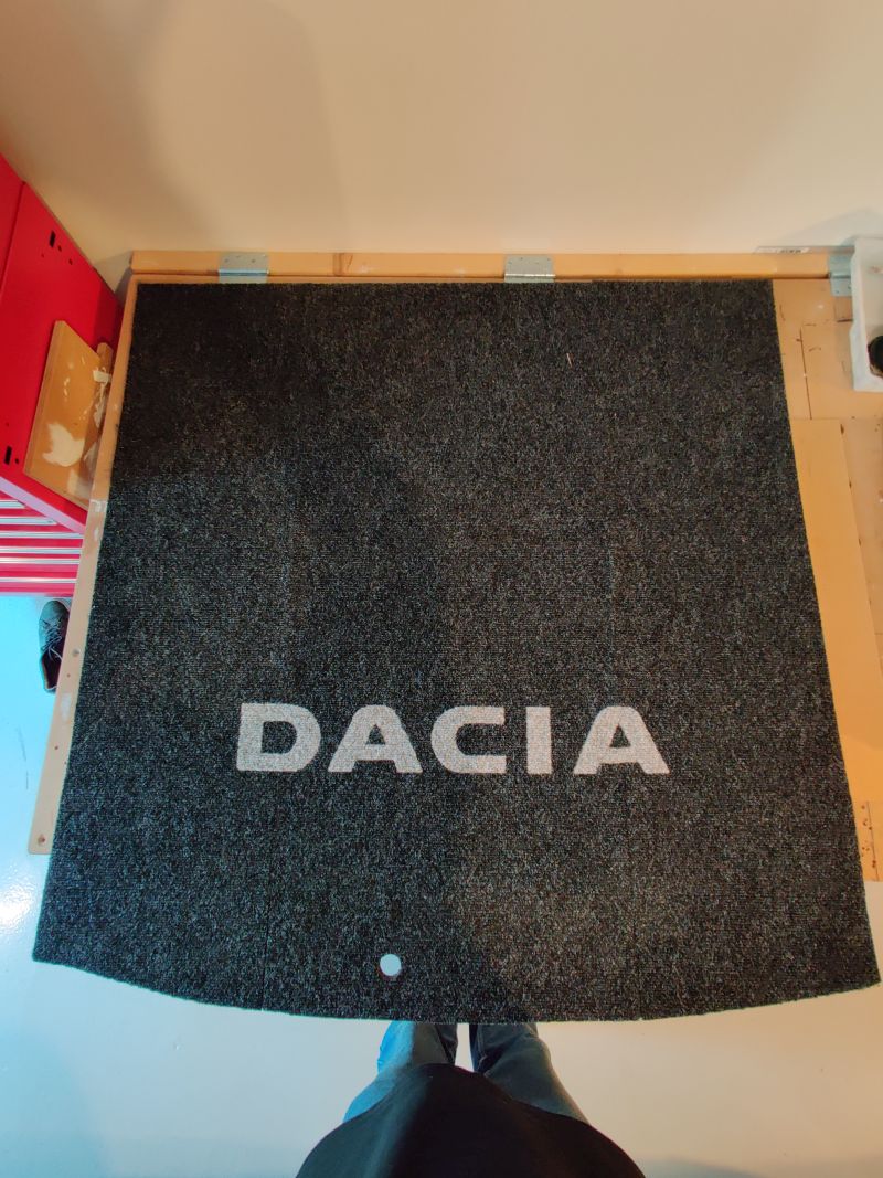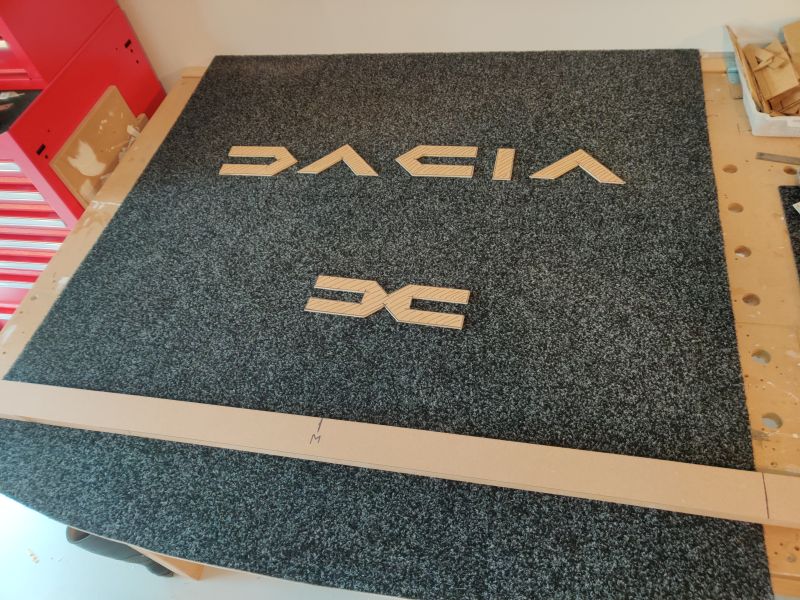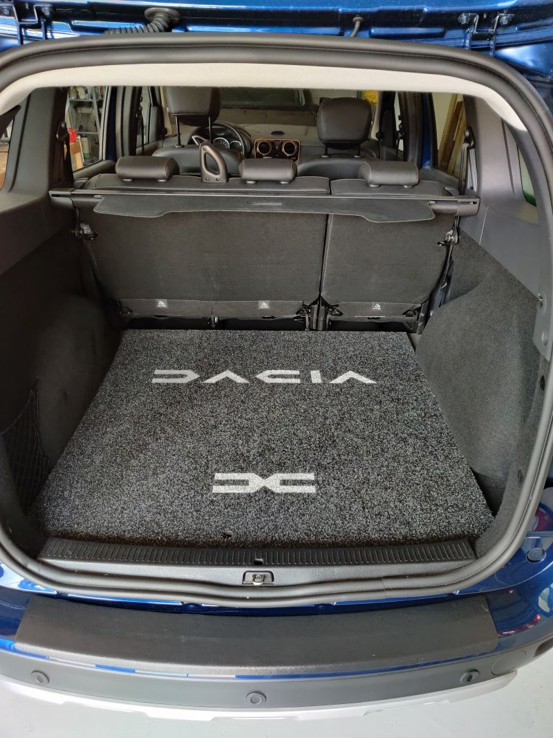 Maar dat is niet alles. Natuurlijk kon ik met mijn Lodgy niet achterblijven. Nee, het "flessenopenerlogo" prijkt nog steeds op de grille. Maar achterin de enorme laadruimte van de Lodgy heb ik een vlakke vloer gemaakt. Om het compleet te maken had ik deze vloer voorzien van contrasterende letters die de naam Dacia vormden.