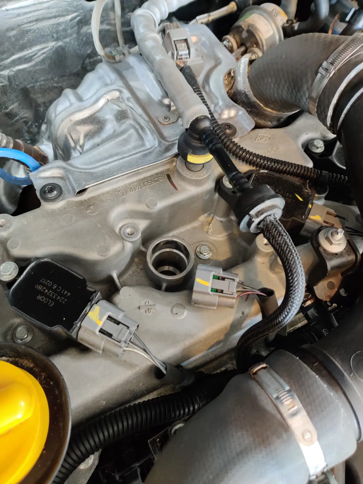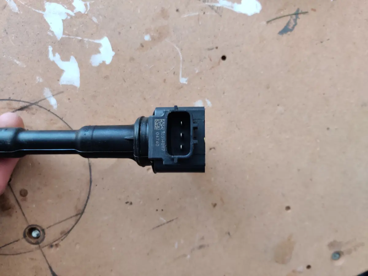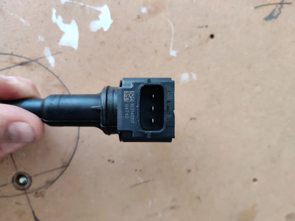 Het is nergens voor nodig om meteen alle 4 bougiedoppen los te nemen; dit kan alleen maar verwarring veroorzaken. Ik ben gewoon aan de linkerzijde begonnen met de eerste bougie. Eerst moet het stekkertje los op de bobine. Deze bobine zit ook met een boutje vast. na het verwijderen van dit boutje kun je de bobine recht naar boven verwijderen.