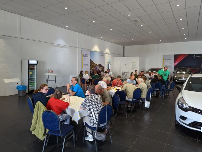 Op ongeveer de helft van de route was een tussenstop ingelast waar de deelnemers een lunchpakket in ontvangst konden nemen. Want de hele dag op pad zonder middageten is ook niet wat, toch?