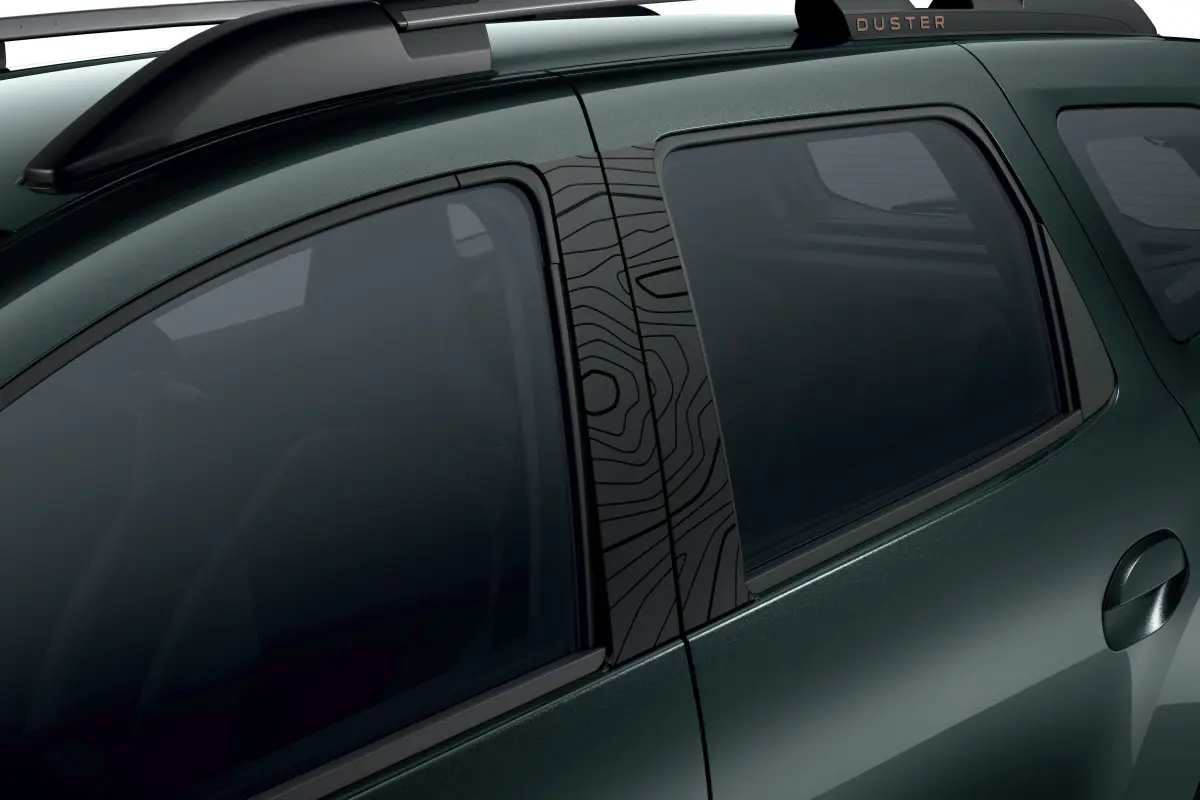 - Topografisch design en aerodynamische accenten op de B-stijlen van de Duster.