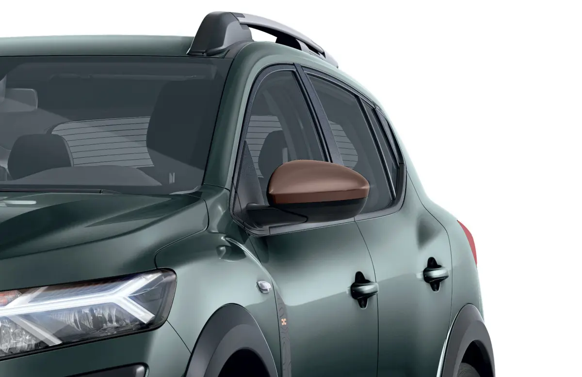 - Modelnaam in koperkleur op de dakrails van de Sandero Stepway, Jogger en Duster en koperkleurige accenten op de dakrails van de Spring.