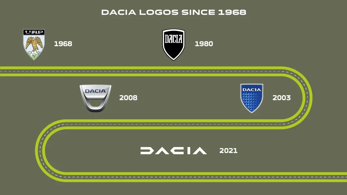Na de overname van Dacia door Renault Group in 1999 is het Dacia-logo een aantal keer vernieuwd, waaronder in 2021 met de introductie van het huidige logo, de Dacia Link, ontworpen om het vertrouwen tussen Dacia en de consument te symboliseren. De gestileerde D en C raken elkaar in het midden en eronder staat de merknaam in een lettertype dat het karakter van Dacia illustreert: robuust en basic.